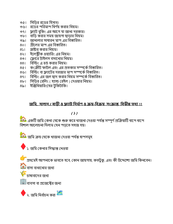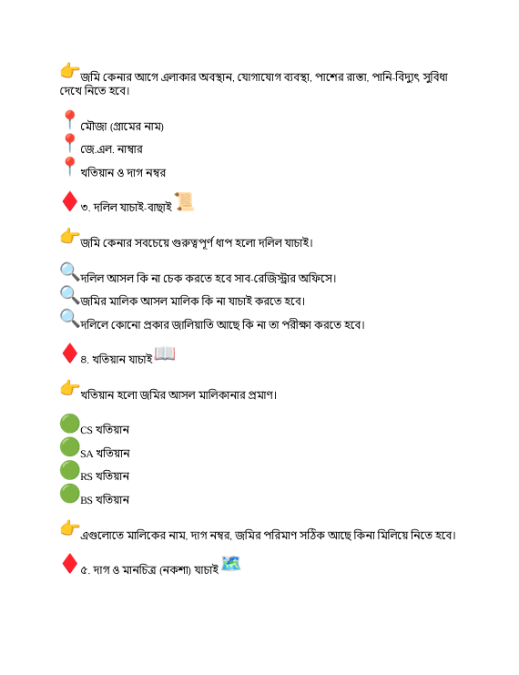 "দারুণ লাগলো! বিশেষ করে জমির খতিয়ান, মৌজা ম্যাপ আর রেজিস্ট্রেশন প্রসেস যেভাবে সহজ ভাষায় বুঝিয়েছে—বাংলাদেশে প্লট/ফ্ল্যাট কেনার বাস্তব অভিজ্ঞতার সাথে পুরোপুরি মিল পেলাম। নতুন ক্রেতাদের জন্য এটা খুবই ভরসার মতো একটি গাইড। Highly Recommended!"